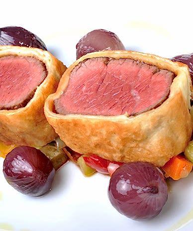 Maya su ve unumuzu bir araya getirip yoğuruyoruz hamurumuzun gelişmesi için bir kenarda dinlendiriken diğer yanda kızgın tavamızda tuz biberle lezzetlen dirdiğimiz bofilemizi her yönünü mühürlüyoruz bu işlemimiz bittiğinde etimizi kendini çekmesi için tezgah üzerinde soğutup buzdolabına alıyoruz.Diğer yanda patlıcan,kuru soğan,sarı kırmızı biber ,sarımsak, jülyen doğranmış fesleğen,kabak ve salçadan oluşan ratatuille mizi sırayla bütütn bu malzemelerimizi sote liyerek hazırlıyoruz.Diğer bir sos tenceresinde ise arpacık soğanşlarımızı bir çorba kaşığı sızma zeytinyağı ile dışı renk alana kadar kavuruyor ve kırmızı şarap ve bir miktar toz şeker ile pişiriyoruz.Hamurumuzu orta bir kalınlıkta açtıktan sonra buz dolabından etimizi çıkarıyoruz ve eğer akan kanı varsa kurulayıp hamurumuzun içine koyup sarıyoruz üzerine yumurta sürüp 160 dereceye getirilmiş fırında 15 dakika ile 20 dakika arası istediğimiz renge gelinceye kadar pişiriyoruz.Tabakta sotelediğimiz sebzelerden oluşan ratatuillemizi en alta gelecek şekilde yerleştiriyoruz.Kenarlarına kırmızı şarapta pişirdiğimiz arpacık soğanlarımızı yerleştidikten sonra Lavaş hamuruna sarılmış bonfilemizi fırından alıp tezgah üzerinde 2 dakika dinlendirdikten sonra ortadan dilimleyip sebzelerimizin üzerine gelecek şekilde koyuyoruz.Afiyet olsun.
