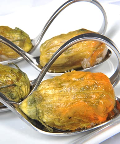 Dolmalık fıstıklarımızı kahverengi bir renk alana kadar kavuruyoruz sırasıyla soğan ve pirincimizi ekleyip güzelce kavurma işlemine devam ediyoruz. Suyumuzu eklemeden önce kuru baharatlarımızıda ekliyor ve 3 dakika daha kavuruyoruz daha sonra bir e bir buçuk ölçüde su ekliyor pilavımızın suyu kaynamaya başlayıp pirinç seviyesine geldiğinde altını kısıp kapağını kapatıyoruz.Pilavımız suyunu çektiğinde demlenmeye bırakıyoruz.Demlenip soğuduğu zaman içine taze baharatlarımızı ince bir şekilde kıyıp pilvımıza karıştırıyoruz.Çok narin olan kabak çiçeklerimizi zedelemeden ağzını açıp içlerini dolduruyoruz.Ağızlarını altına gelecek şekilde kapatıp tenceremize diziyoruz.Kabak çiçeklerimiz çok narin olduğundan dolayı dolmalarımızın altına havuç soğan patates de olabilir bunlargibi sebzeler dizip dibinin tutmasını önlüyoruz.Tenceremizin dibine çok az su koyarak buharlı bir ortam yaratıp kabak çiçeklerimizi 10 dakika pişirip soğumaya bırakıyoruz. Afiyet olsun...